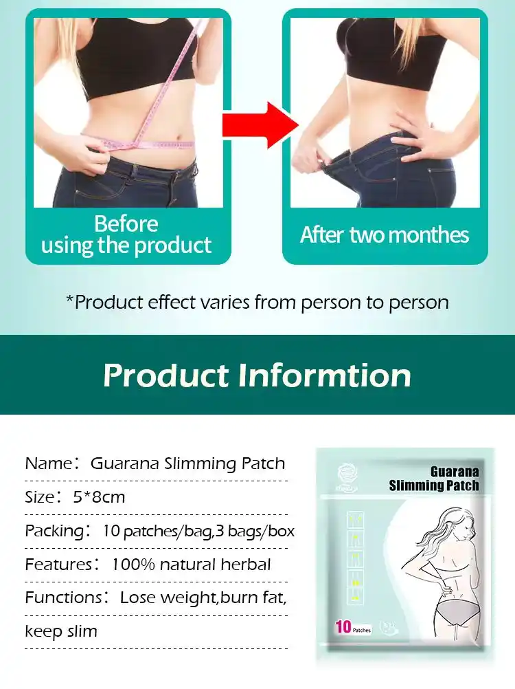 Our Guarana Slimming Patch harnesses the power of guarana extract, known for its natural caffeine content, to help boost metabolism and promote fat burning. Designed for easy, discreet wear, this patch delivers active ingredients gradually, supporting energy levels and weight management throughout the day. Made with breathable, skin-friendly material, it’s perfect for daily use without discomfort.