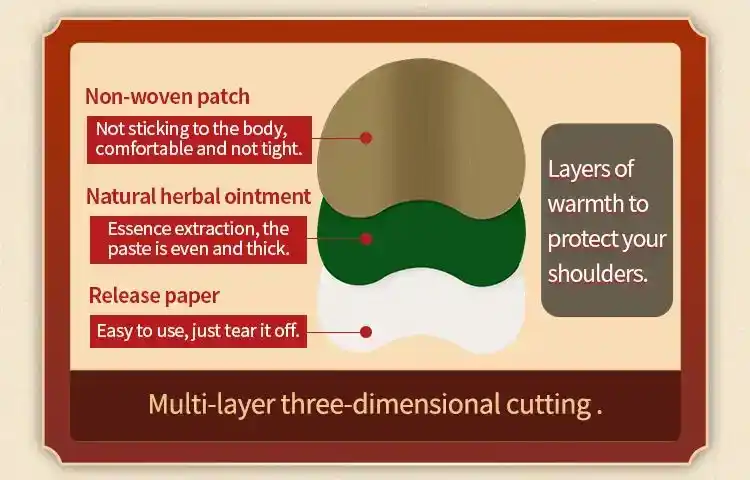 Our Wormwood Pain Relief Patch is specially designed for shoulder pain relief, using natural wormwood extract to promote blood circulation, reduce stiffness, and ease muscle tension. The self-heating formula provides deep, soothing warmth to relieve soreness and discomfort effectively. Made with a breathable, skin-friendly material, it adheres securely and offers long-lasting relief for up to 12 hours.